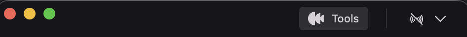 Du kannst zwischen Airtime Camera, Airtime Recorder, Airtime Stacks und Airtime Creator wechseln, indem du oben im Airtime-Anwendungsfenster auf die Schaltfläche „Tools“ klickst: