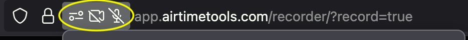 If you do not allow Airtime Recorder to access the camera and microphone on the first attempt, you will see this message about checking website settings in your browser.